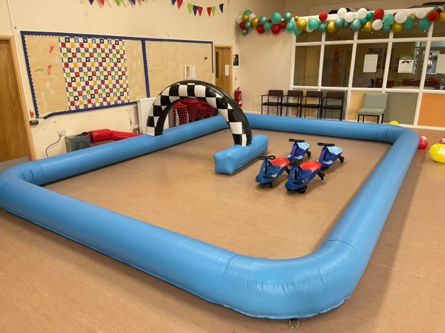 This is ideally suited to indoor bookings as the cars require a flat smooth surface to work properly.