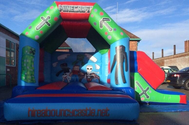 minecraft themed slide and bounce castle, perfect for those looking for something different for there birthday or event,